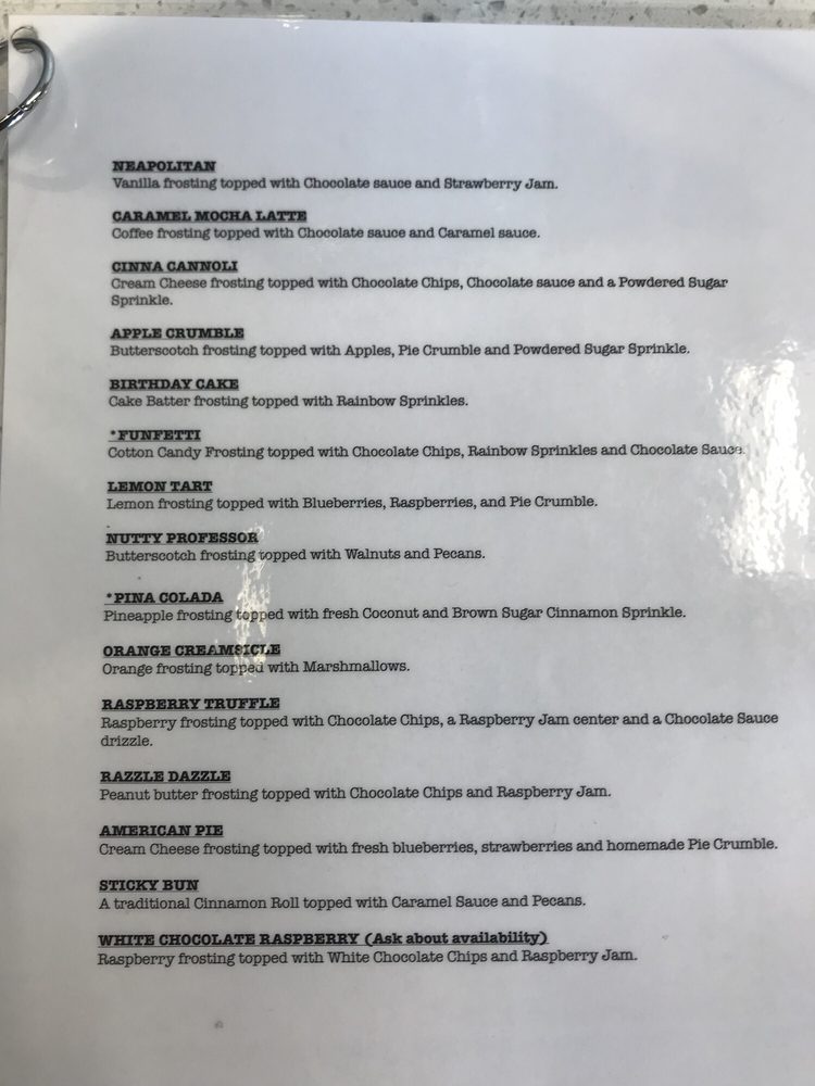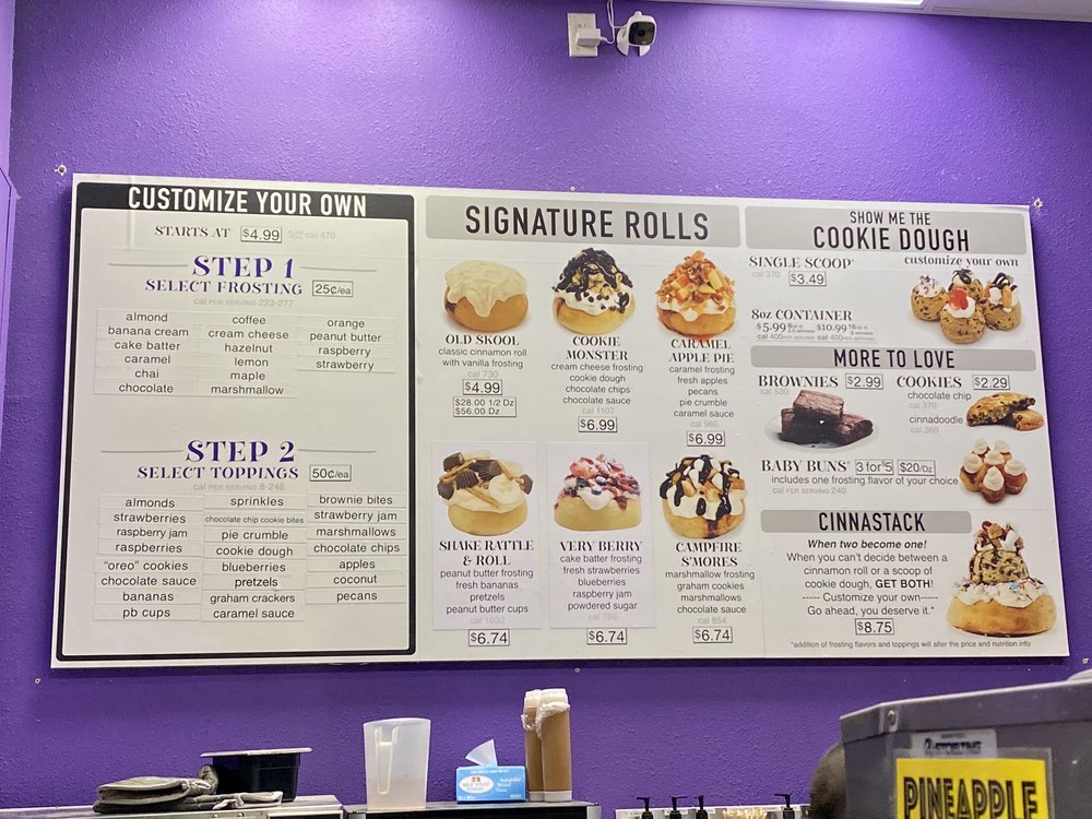 “ I really love all the different options. I usually get the Captain America which has strawberry, blueberry, jam, and cream cheese frosting. So good. I just wish the rolls itself was a little softer but I usually come a little later in the day so maybe thats the reason? Not sure but I still come back. Service is quick and they have little games at the tables if you are waiting or decide to eat there. ”